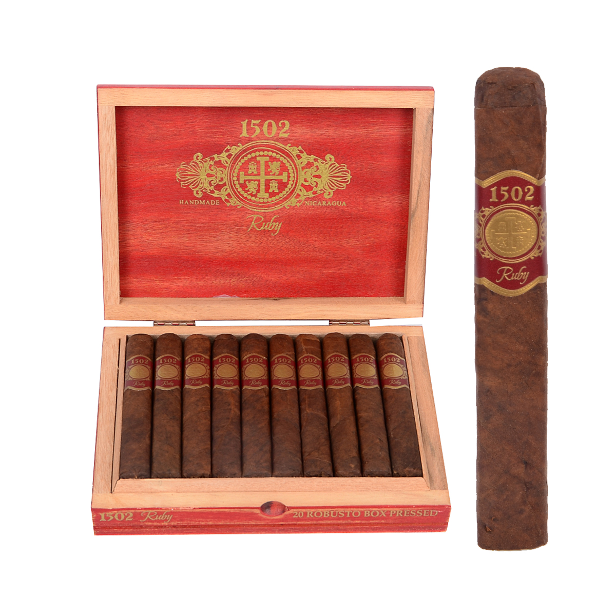 1502 Cigars is a brand of the Global Premium Cigars (GPC) company. Founded by Enrique Sanchez Icaza, the company is based in Nicaragua and focuses primarily on premium cigars with Nicaraguan blends. The name 1502 comes from the year Christopher Columbus discovered Nicaragua. 1502 Ruby is one of the three lines of 1502, the blend is a combination of carefully selected and aged tobacco leaves: Ecuadorian wrapper Sumatra and filler tobaccos from Esteli and Jalapa. Cigars with a magnificent appearance and a box-press shape, revealing the mastery of hand-crafting. Medium in strength, with flavors of nuts, white pepper, nougat, complemented by woody and earthy notes.