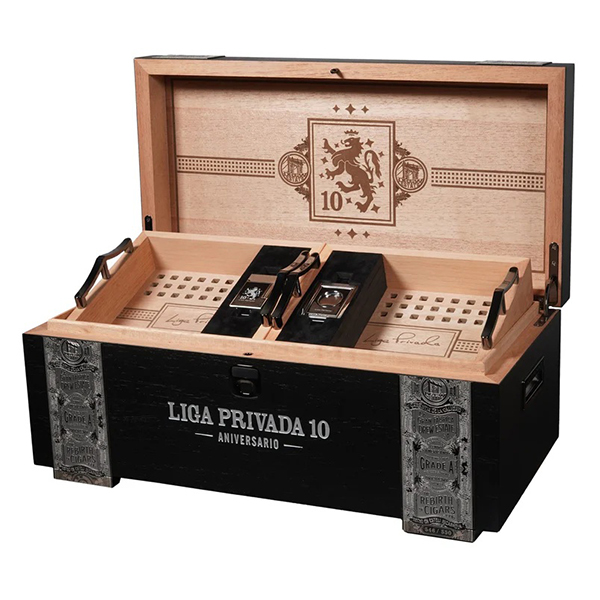 Drew Estate, in collaboration with ST Dupont, created this exquisite project: the Liga Privada 10 Aniversario ST Dupont Collection, a limited edition set made to celebrate the 10th anniversary of Liga Privada. The collection was unveiled at the PCA Trade Show 2025 in New Orleans and includes three luxury items sold together: a custom lighter, a cutter, and a biometric humidor.