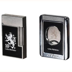 This stunning lighter features an elegant and practical design. Lacquered in black with the Liga Privada Aniversario logo engraved in silver on the front and the Drew Estate logo surrounded by a silver tobacco leaf on the back. Hand-coated with natural lacquer for a pearlescent finish, the lighter is shock-resistant, scratch-resistant, and fireproof. Engraved with a micro-diamond head and palladium, it features 24 grooved lines on the ignition wheel for easy grip, and the dual soft flame is activated via the roller wheel, providing smooth and reliable lighting.