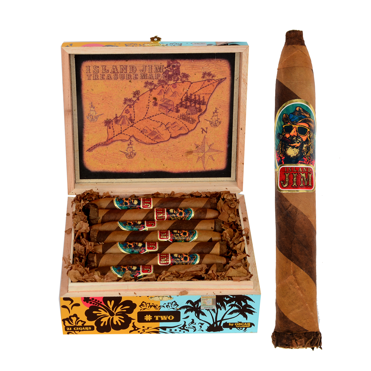 The Island Jim brand was created in collaboration between Oscar Valladares and Jim Robinson (also known as Island Jim), the owner of a cigar shop in Pennsylvania. Island Jim cigars are crafted at the Oscar Valladares Tobacco & Co. factory in Honduras and are known for their flavor, construction, unique shape, and eccentric, eye-catching appearance.