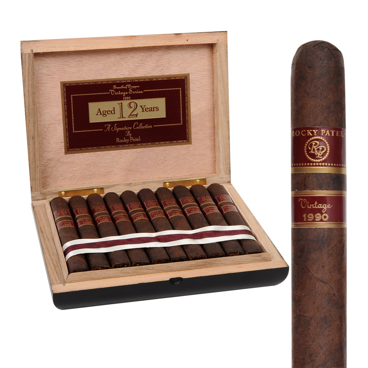 “The Vintage 1990” is a medium strength, premium blend with delicate aromas of nuts and caramel. This cigar impresses with a 12-year-aged Broadleaf Maduro wrapper from Honduras that has mellowed over the years and gained both richness and flavor. The filling is Dominican and Nicaraguan tobaccos aged for 5 years. Known for its elegance and balance, “The Vintage 1990” has twice won a prestigious place in the 25 best cigars of the year, receiving 92 points from Cigar Aficionado.