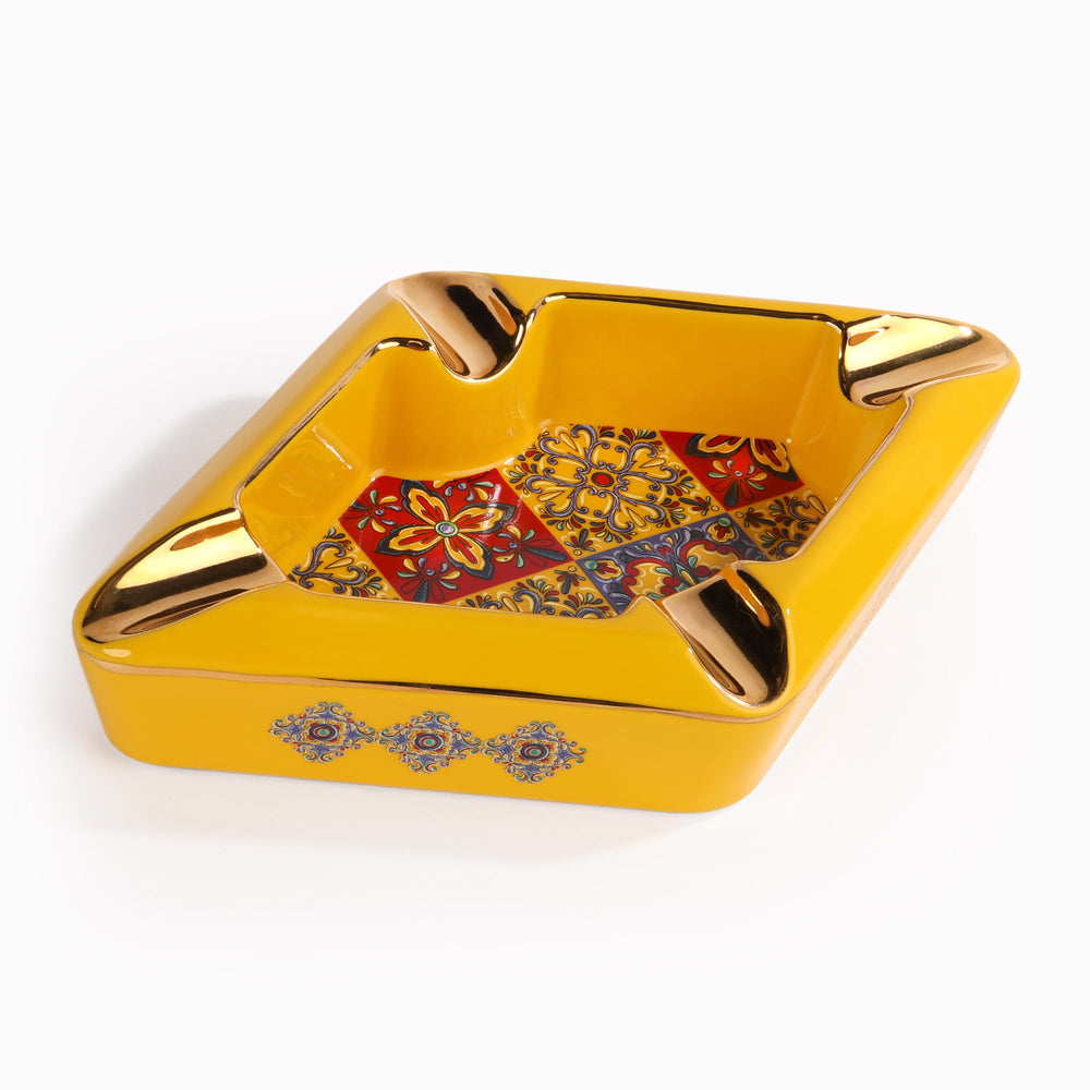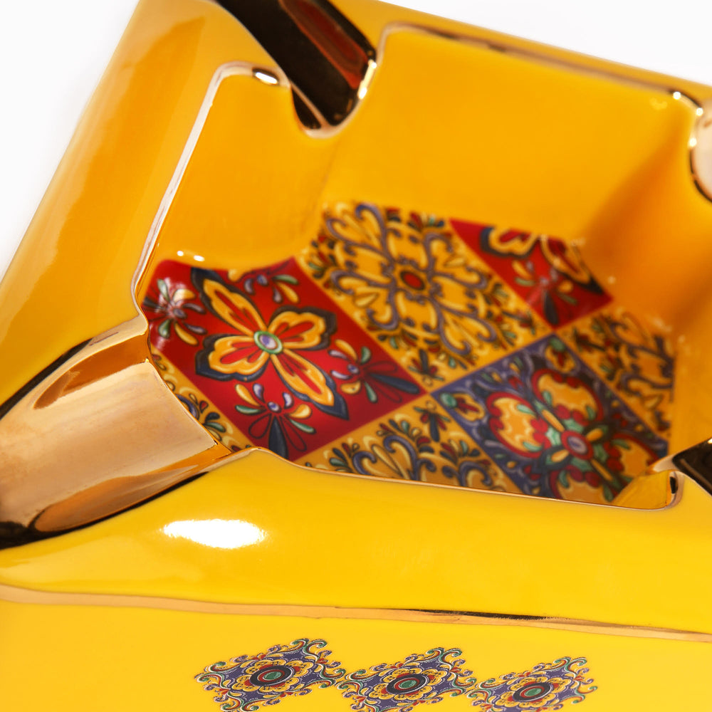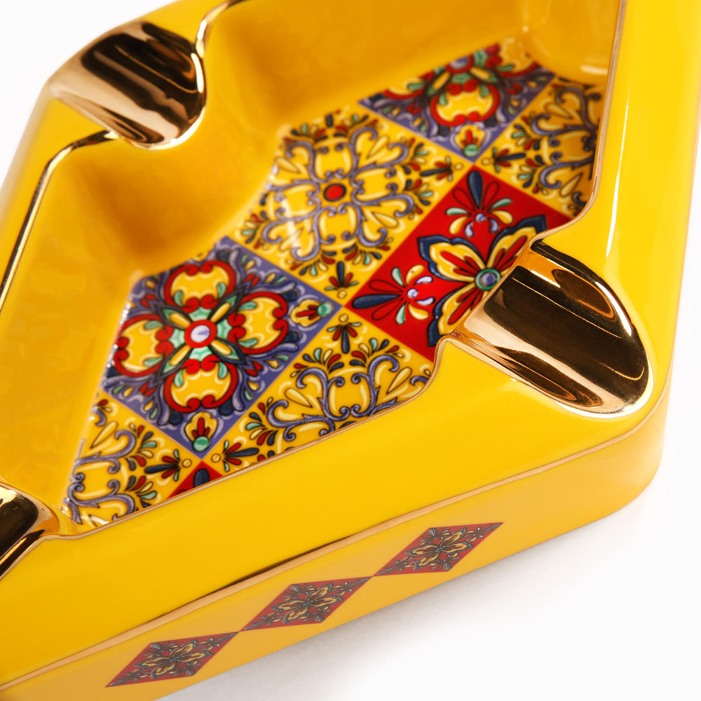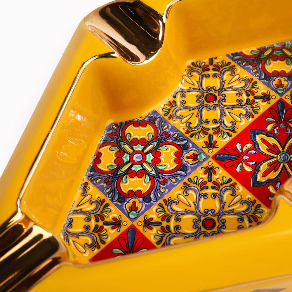 Красив и стилен порцеланов пепелник OpusX за четири пури. С изключително внимание към детайла, с форма на диамант, въплащаващ испанската култура с нейните колониални плочки в многоцветен дизайн.