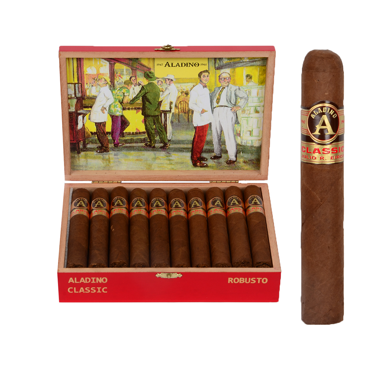 Aladino Classic носат усещането и вкуса на онези традиционни пури, произведени в Куба в края на 40-те и началото на 60-те години. Изработени във фабриката Fabrica de Puros Aladino S.A. в Хондурас, те притежават Maduro обвиващ лист от семена Habano, свързващият тютюн е Corojo, пълнежа е от семена Habano тютюн, отгледан в плантациите за тютюн JRE в Jamastran, Хондурас. Средни по сила, със сладки и пикантни вкусове и аромати на меласа, еспресо и бял пипер.