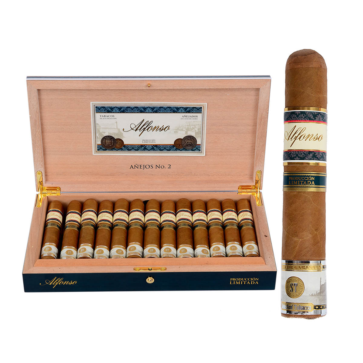 На изложението PCA в Лас Вегас през 2022 компанията Selected Tobacco представи четвъртия бранд в своето портфолио — Alfonso. Името произлиза от собственика на компанията – Нелсън Алфонсо, световноизвестен със своите проекти, като брандирането на пурите на Habanos, дизайнът на хумидора за 50-та годишнина на Padron и много други. Алфонсо притежава таланта да прави изключително добри блендове и го е доказал многократно с марките си Atabey и Byron, както и с новата му марка Alfonso. Това са ултра-премиум брандове, при които акцентът е върху елегантното представяне и допълнителното отлежаване на тютюна. В продължение на пет години, тютюните са оставени да „почиват“ в стая, облицована с пет различни вида кедър (кубински, испански, ливански, бразилски и мексикански) при променлив диапазон на влажност, като по този начин поемат уникалните кедрови аромати. Произвеждат се в Коста Рика в много ограничени количества и могат да бъдат закупени само в няколко магазина по света, които са сертифицирани от производителя. Обвиващият лист и свързващият тютюн са Ecuadorian Connecticut Shade, а пълнежът комбинира внимателно подбрани тютюни от Перу и Никарагуа. Пурата е с лека към средна сила, с отлично балансирано усещане през целия процес на пушене. При запалване се разкрива комплексен профил — натурален тютюн, кедър, сметана, лека фъстъчна нотка, черен пипер и фини плодови нюанси. В последните етапи на пушене натуралният тютюн остава водещ, докато сметаната, кедърът и черният пипер се съчетават в изискан, балансиран финал.