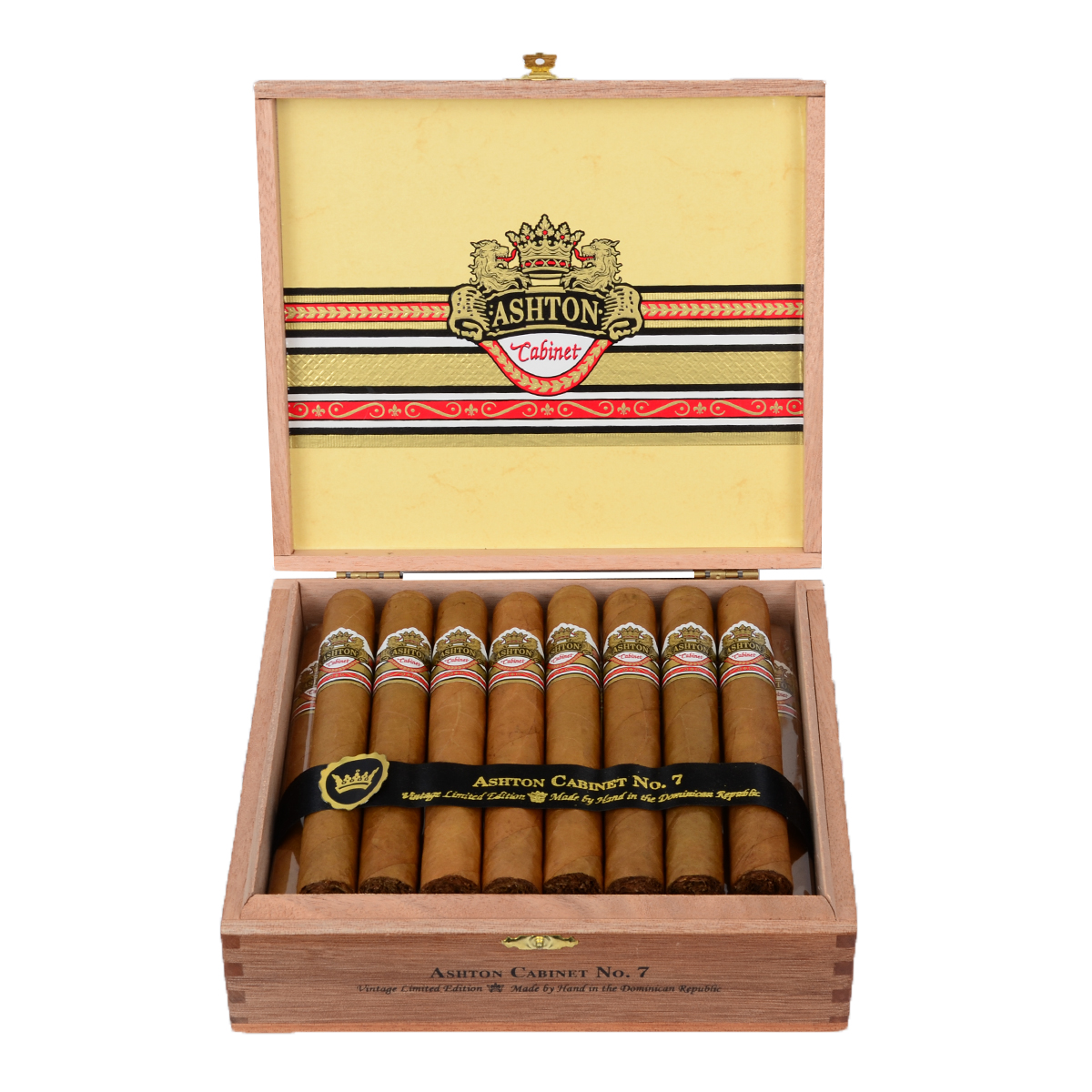Ashton Cabinet № 7 е пура, която издига Доминиканската традиция в света на премиум пурите до съвършенство. Оценена с 94 точки от критиците на Cigar Aficionado, тя представлява резултат от внимателно съчетание на първокласни доминикански тютюни – пълнеж и свързващ лист, отлежали между пет и седем години, обвити в луксозна Connecticut Shade обвивка с блестящ кестеняв оттенък. Всяка пура е създадена с изключително внимание към детайла, за да предложи гладко, кадифено и хармонично пушене.