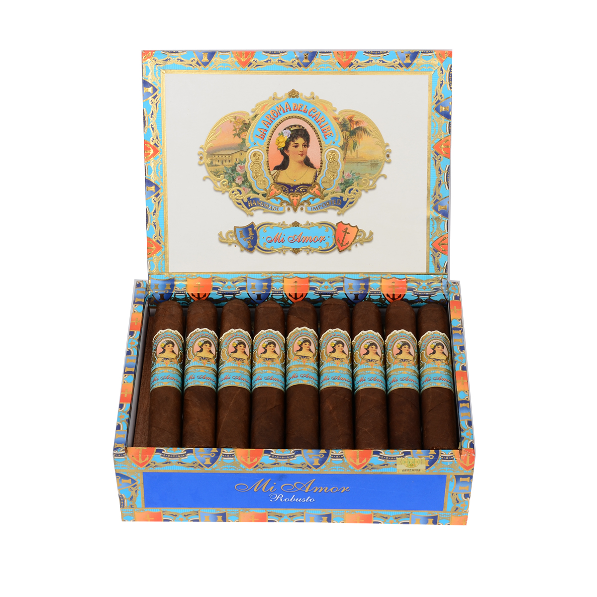 Обвиващият лист Mexican San Andrés добавя дълбочина и наситен аромат, докато никаргуанският пълнеж и свързващ тютюн създават хармоничен и комплексен вкус. Профилът на Mi Amor разкрива ароматни нотки на черен шоколад, бадеми, кафе и деликатни подправки, завършващи със сладко-пикантен финал.