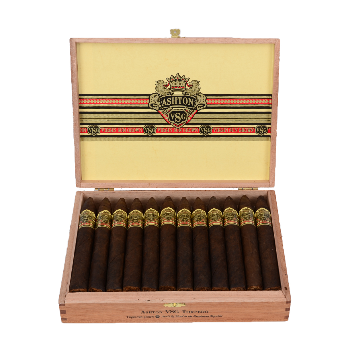 Ashton VSG (Virgin Sun Grown) е пура от супер премиум клас, създадена за ценители на плътния и богат вкус. Разработена от Carlos Fuente Jr. и ръчно изработена в Доминикана, тя е част от една от най-престижните линии в света на пурите.